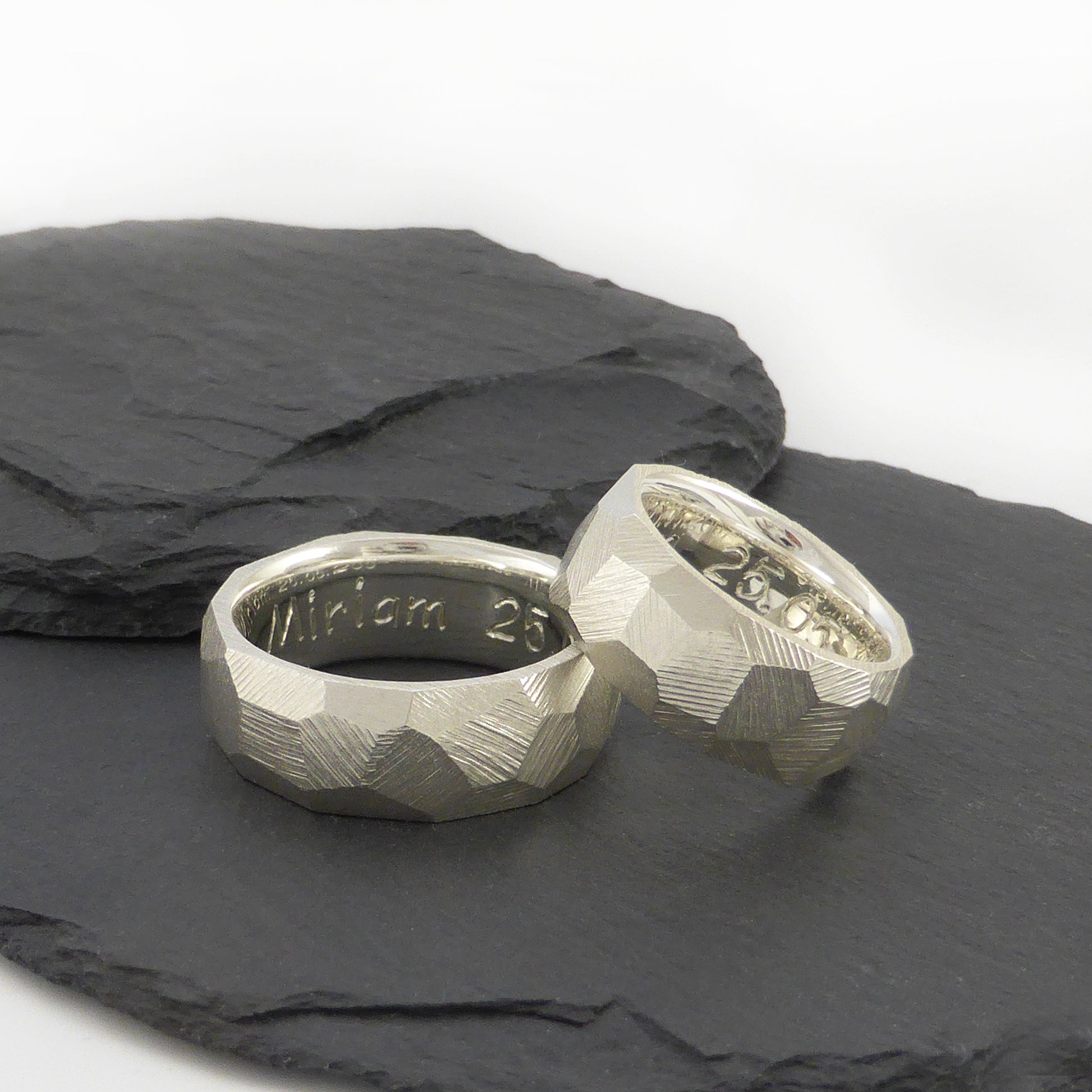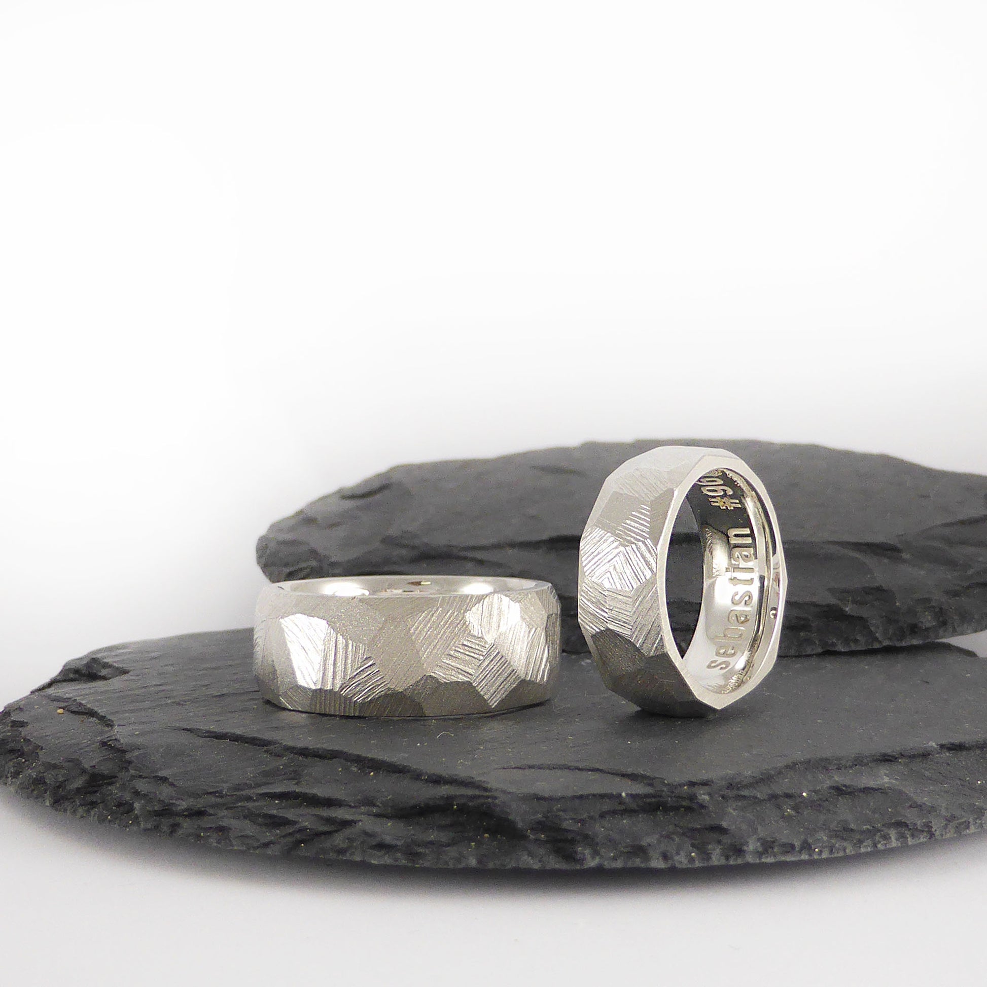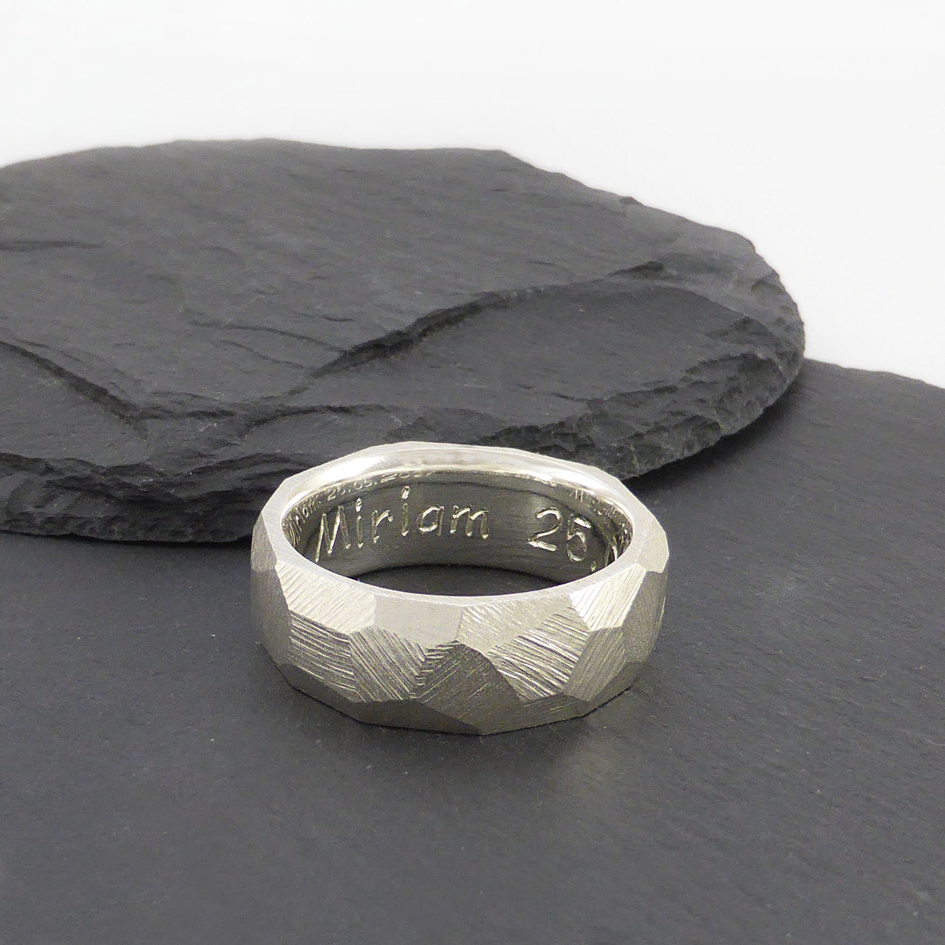 Der Ring Facets ist von zahlreichen, unregelmäßigen Flächen umzogen, die ihm seinen individuellen, rustikaler Look verleihen.